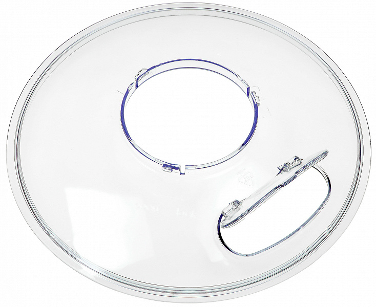 Крышка чаши прозрачная, она надевается на нижнюю часть подъемной головки миксера до крепления насадок. В чаше предусмотрено отверстие для закладки продуктов, закрывающееся откидной крышечкой.