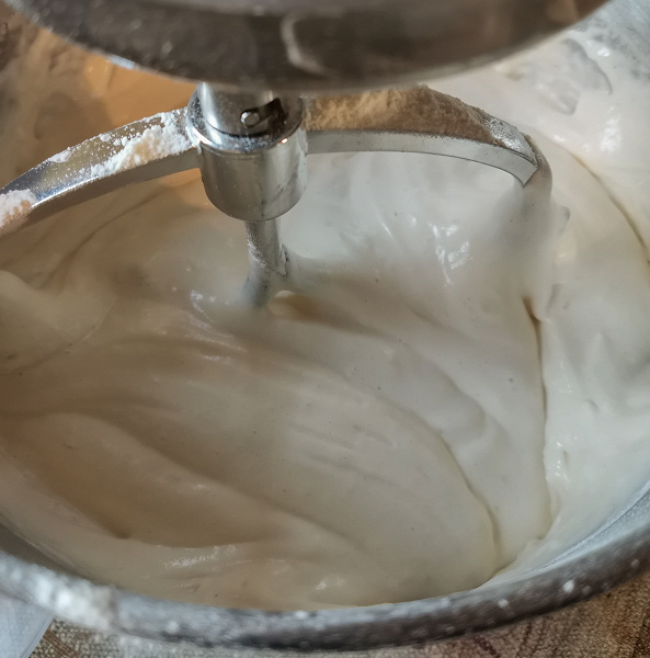 Прежде всего хочется отметить отличный результат взбивания яиц при изготовлении бисквита. Минимальное количество яиц, которое у нас взбил прибор — 5 шт., максимальное — 18 шт., при большем количестве пена начинает вылезать из емкости. Никаких мук отделения желтков от белков, яйца грузятся в чашу и через 5-15 минут, в зависимости от количества и желаемой конечной консистенции, мы получаем взбитую массу. Отметим, что 16 яиц мы взбили до такого увеличения в объеме, что им едва хватило 10 литровой дежи. Поэтому максимальная загрузка в 30 яиц, как написано в инструкции, при изготовлении бисквита вряд ли возможна, объема дежи не хватит.